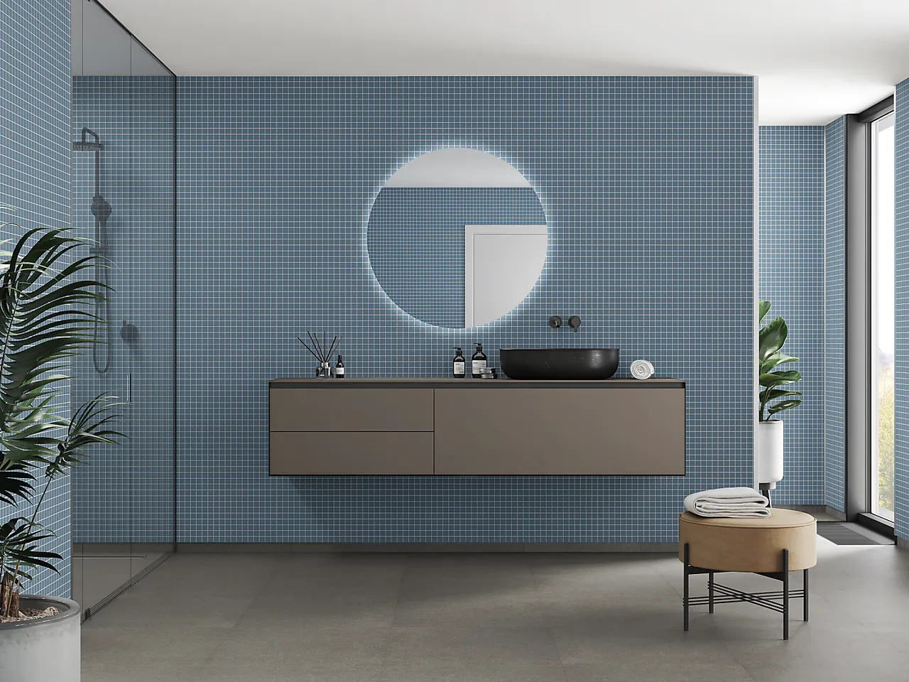 Baderomsplate dusty blå flis 3x3 cm 11x620x2400 mm