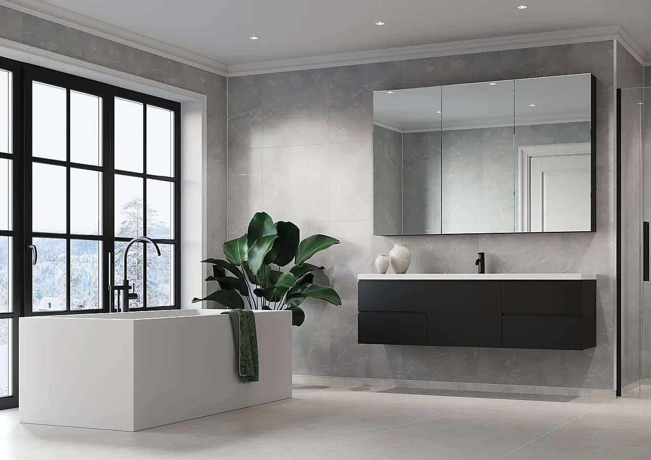 Baderomsplate svart marmor flis 11x620x2400 mm