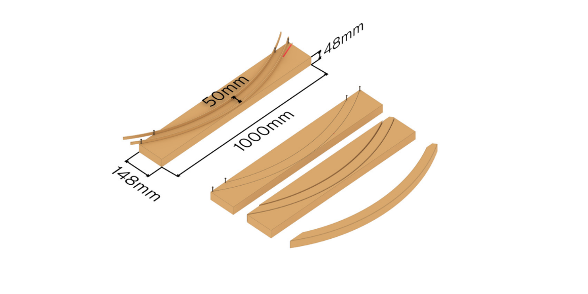 bruk en tynn og bøyelig pinne eller avkapp for å danne en bue mellom skruene og øverste punkt på planken. Pinnen kan du lage ved å bruke en bordsag.