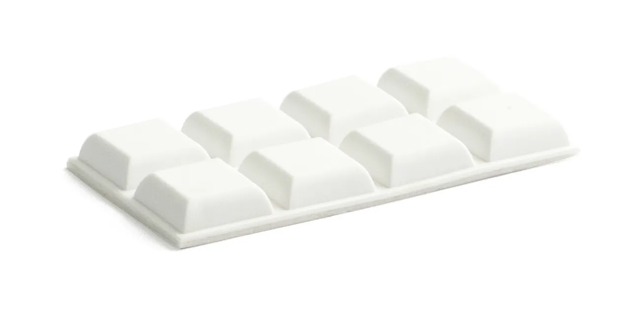 Buffert av hvit, selvklebende plast. Leveres 8 stk per brett.