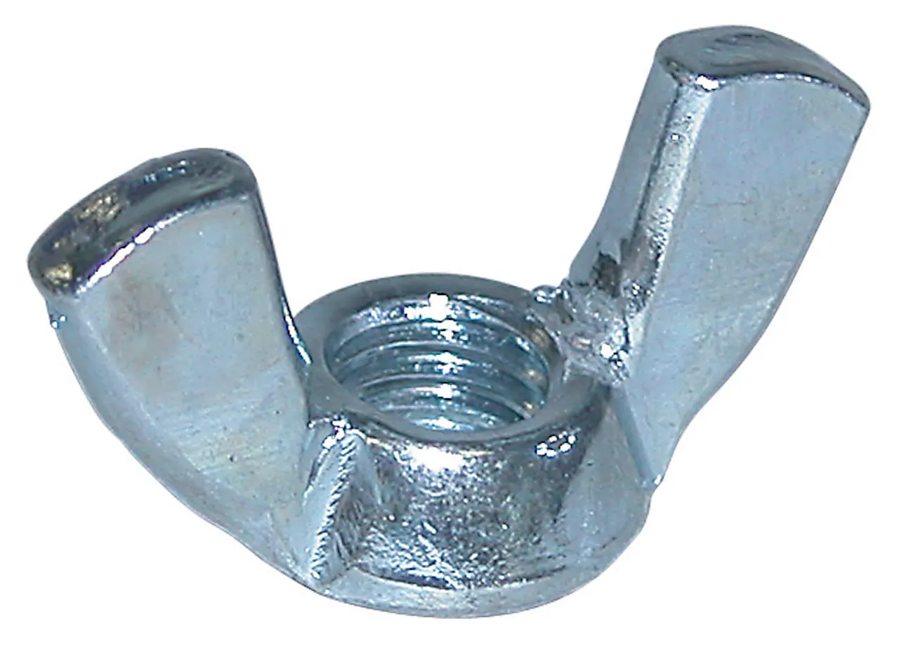 Vingemutter, elforsinket med metrisk gjenge. Til innendørsbruk. Ved bruk av vingemutter kan man enkelt løsne/ stramme spennet uten bruk av verktøy.