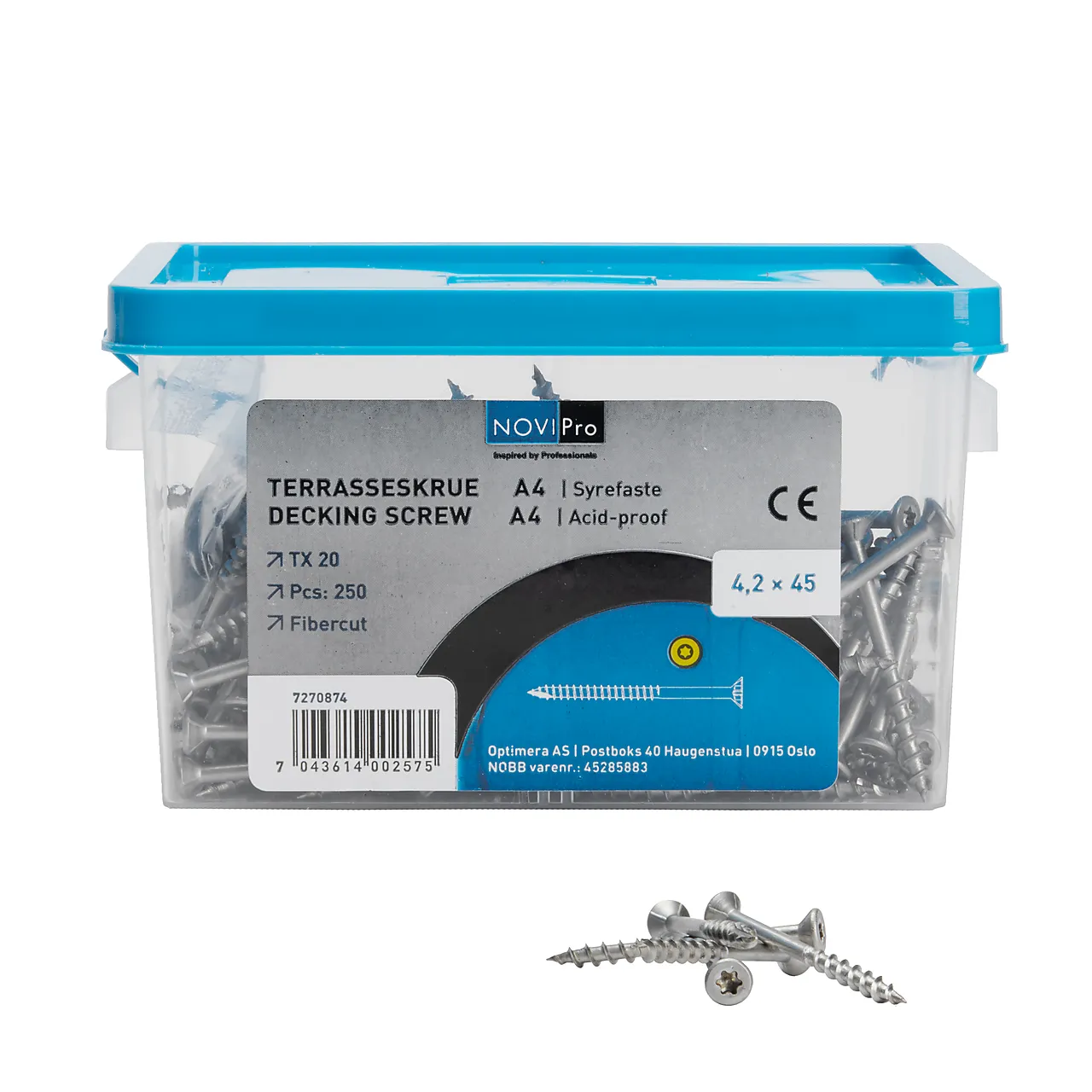 Terrasseskrue syrefast 4,2x42 mm a4 a 250 stk torx 20