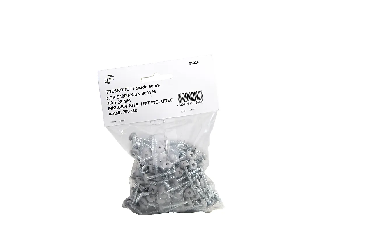 Dette produktet erstattes. Hvis du trenger mer enn det som er lagerført, anbefaler vi dette produktet:Skrue syrefast 4,0 x 28 mm matt grå