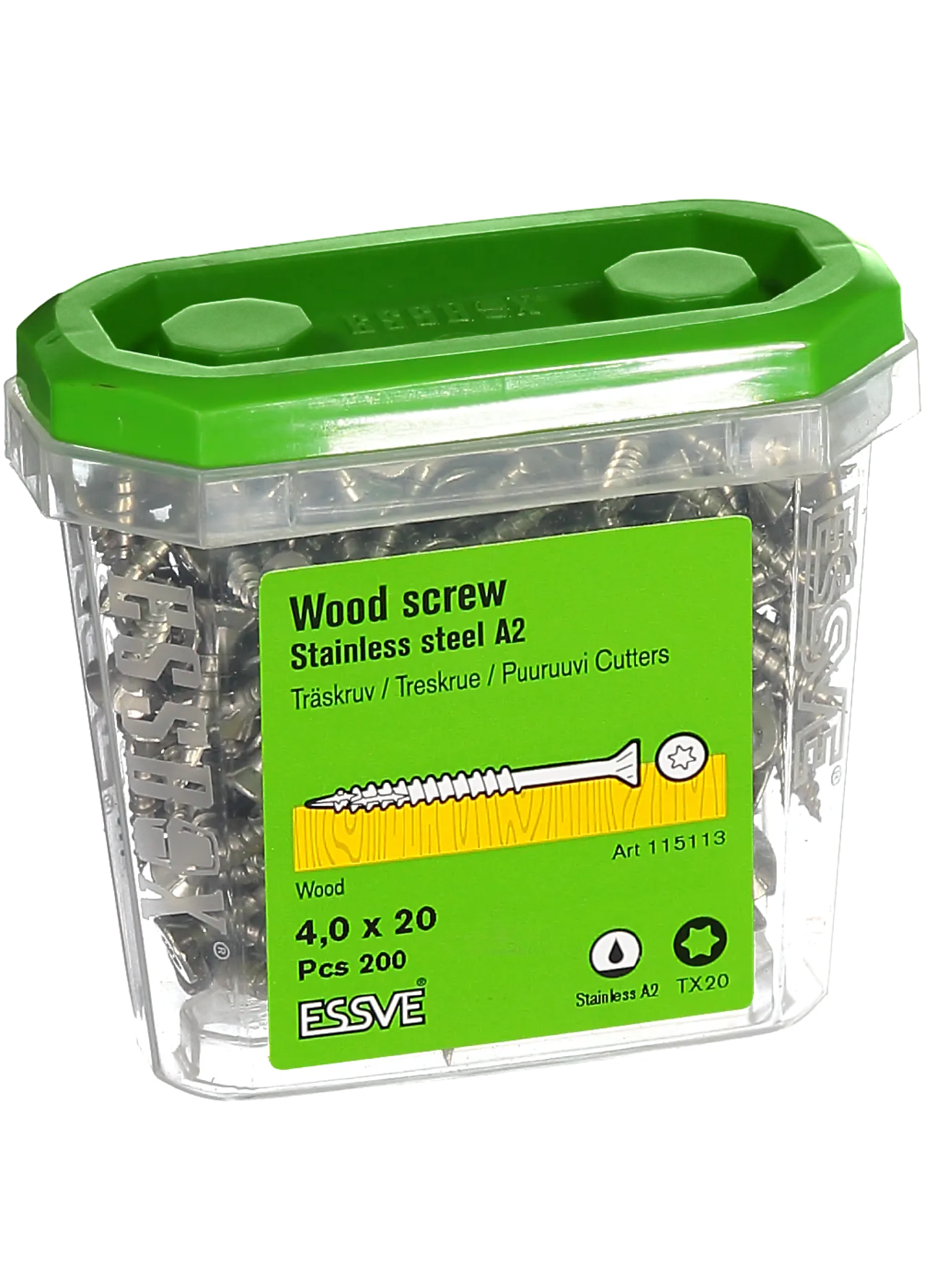 Treskrue utv sh 4x20 a2 a-200a2 rustfri senkhode