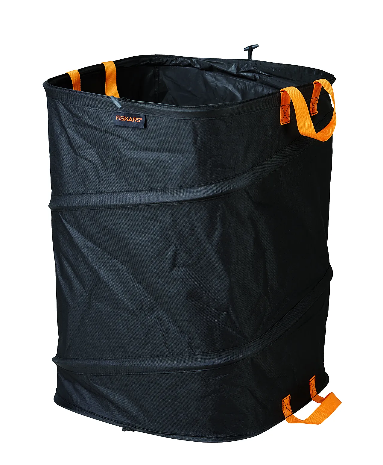 En smart og plassbesparende hagebag som gjør opprydding i hagen enklere. Den fjærbelastede konstruksjonen holder bagen oppreist under bruk og lar den klappes sammen til kun noen få centimeters tykkelse ved lagring. Laget i slitesterkt og lett materiale som tåler både rivning og mugg. Med solid bærehåndtak og en praktisk firkantet form ligger bagen stødig og gjør det enkelt å rake eller koste hageavfall rett inn. Et perfekt alternativ når du ikke trenger en trillebår – ideell for løv, gress og annet hageavfall.