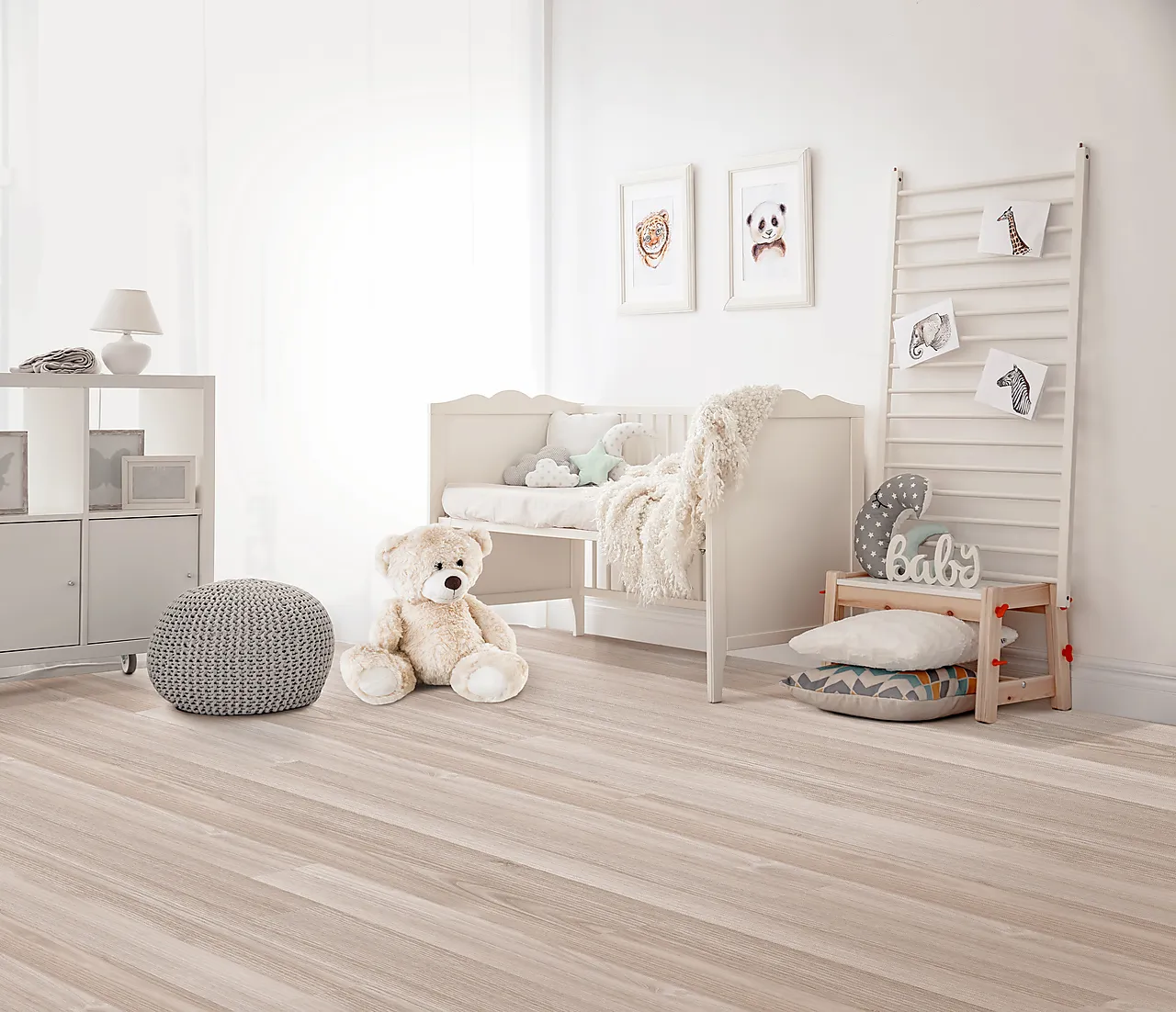 Laminatgulv med et unikt låsesystem som kobler gulvbordene enkelt sammen, uten bruk av lim. Rolig og naturlig design uten fuger eller kvister, med en myk grå/bruntone. Overflaten er matt og komfortabel, og gir deg den samme følelsen som oljet parkett. Designet formidler den naturlige og enkle skjønnheten ved treet. Klikklåssystemet i aluminium gjør monteringen rask og enkel. 1-stavs-plankene kommer med Silent System som er et lyddempende underlag. Plankene har en impregnert, vannresistent HDF-kjerne som reduserer fuktgjennomtrengning. Gulvet innehar den høyeste klassifiseringen (klasse 34), hvilket gjør at det passer til alle offentlige og private rom, med unntak av våtrom. Laminatgulvet er slitesterkt og krever minimalt med vedlikehold. En pakke inneholder 8 bord og 1,9119 m2. Tykkelse 11 mm. Produktet kan leveres Ferdig Montert, som du kan lese mer om her