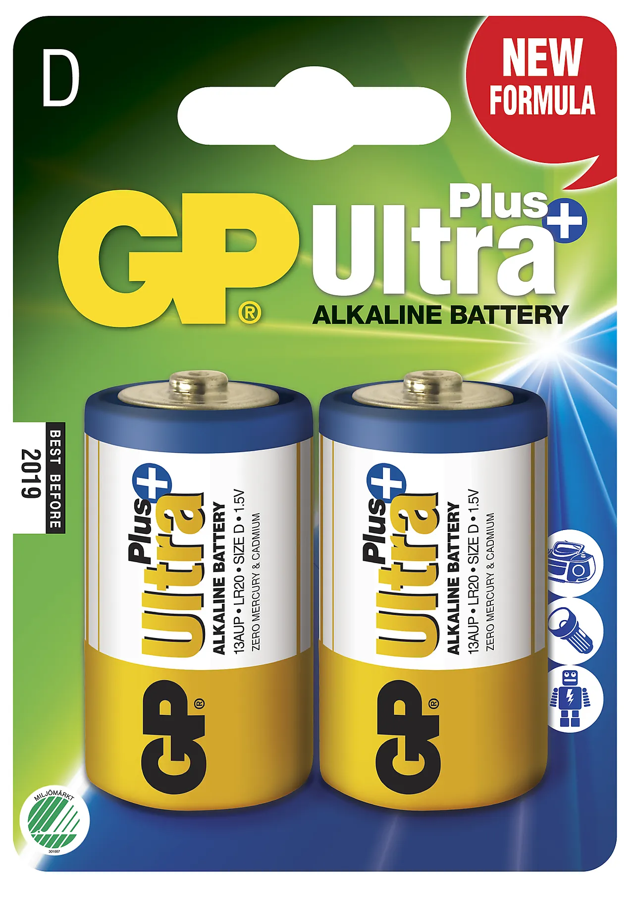 Batteri Ultra Plus Alkaline GP 13AUP-D/LR20 2 stk