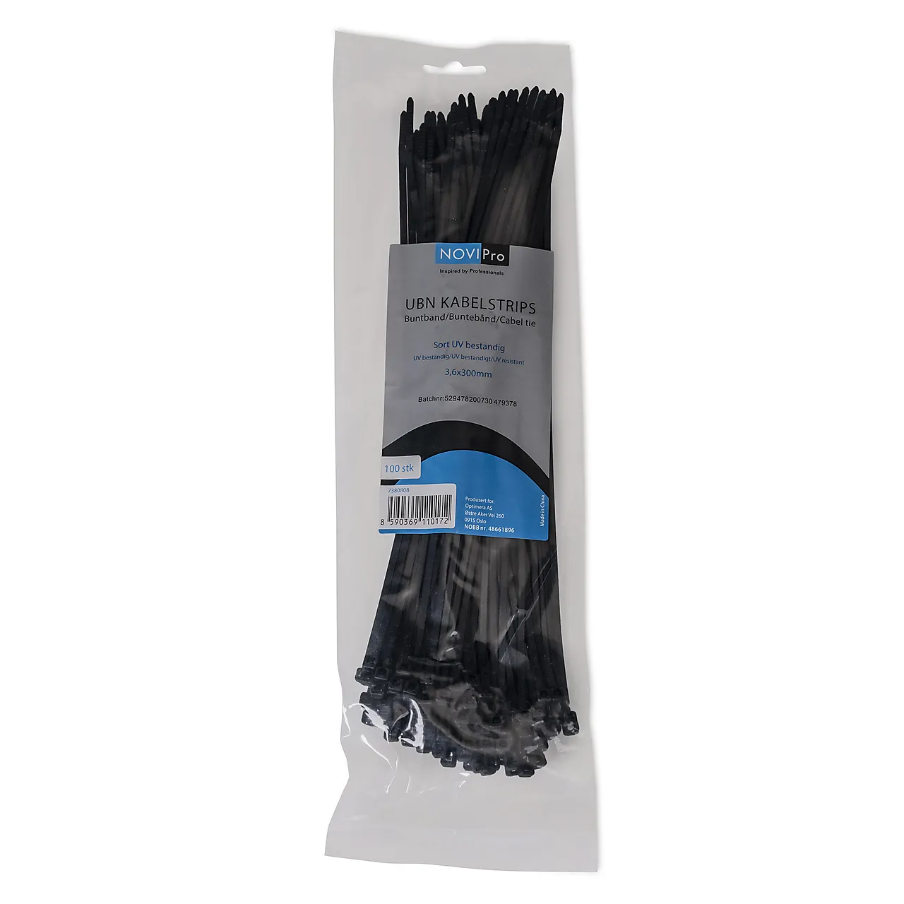 Kabelstrips ubn 3,6x300 sort novipro uv-stabilisert 100 stk