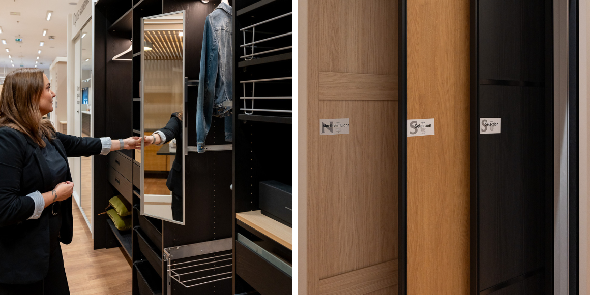 Valg av garderobe kan virke overveldende, men hos Montér gjør vi prosessen enkel. I byggevarehusene hjelper vi deg med å tegne garderoben slik at du enkelt kan se hvordan det blir.