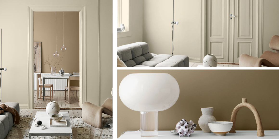 Det nye er at beigetonene er mer gylne enn for noen år siden, og derfor oppleves som positive og optimistiske farger, sier Birgit. De føles både tidløse og tidsriktige, og gir et moderne uttrykk – spesielt om du maler veggene med den matte malingen LADY Pure Color. Beigetoner er fine å kombinere ton-i-ton, men får ekstra karakter i kombinasjon med en skikkelig aksentfarge som rød. Og husk at selv om veggene males med matt maling, så kan du med hell bruke en halvblank eller helblank maling på listverk og dører. LADY Supreme Finish, som er maling for tre og panel, kommer i fire ulike glansgrader, så her er mulighetene mange for en personlig touch.