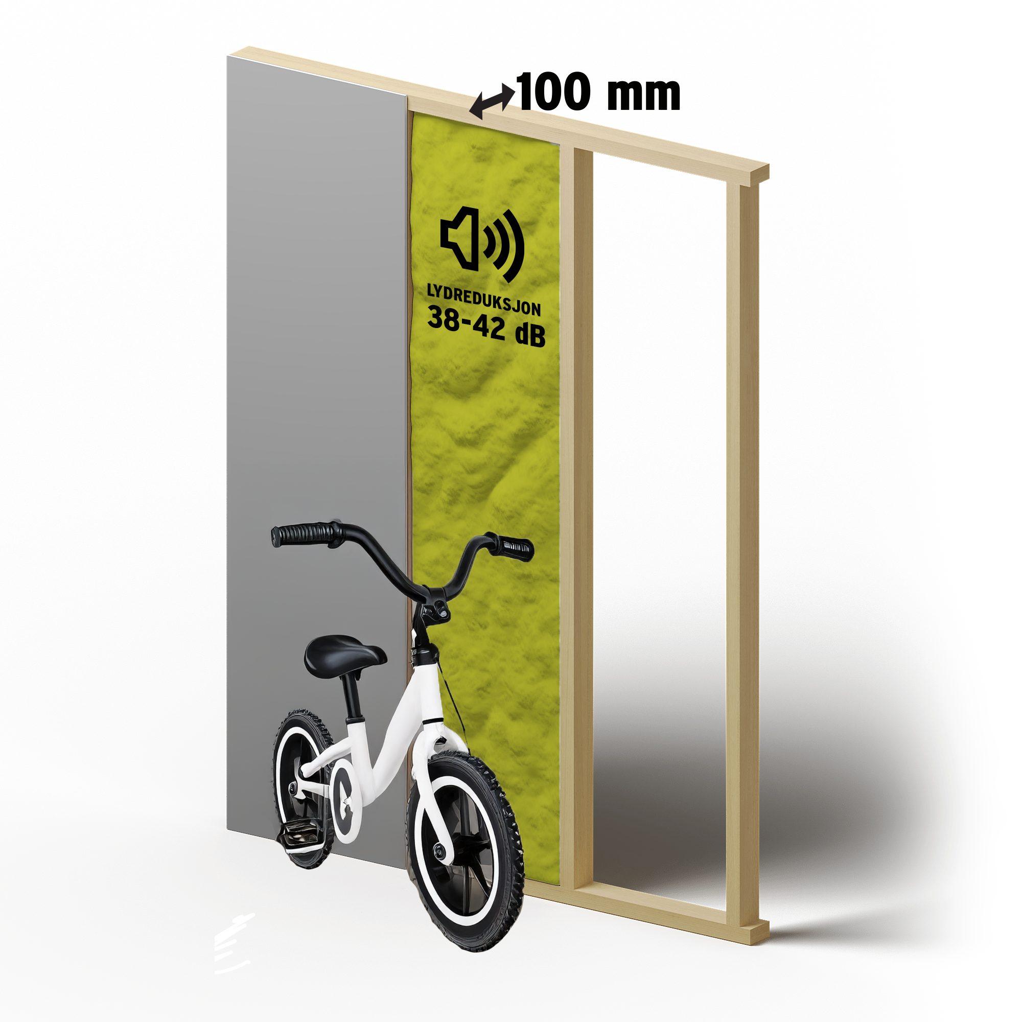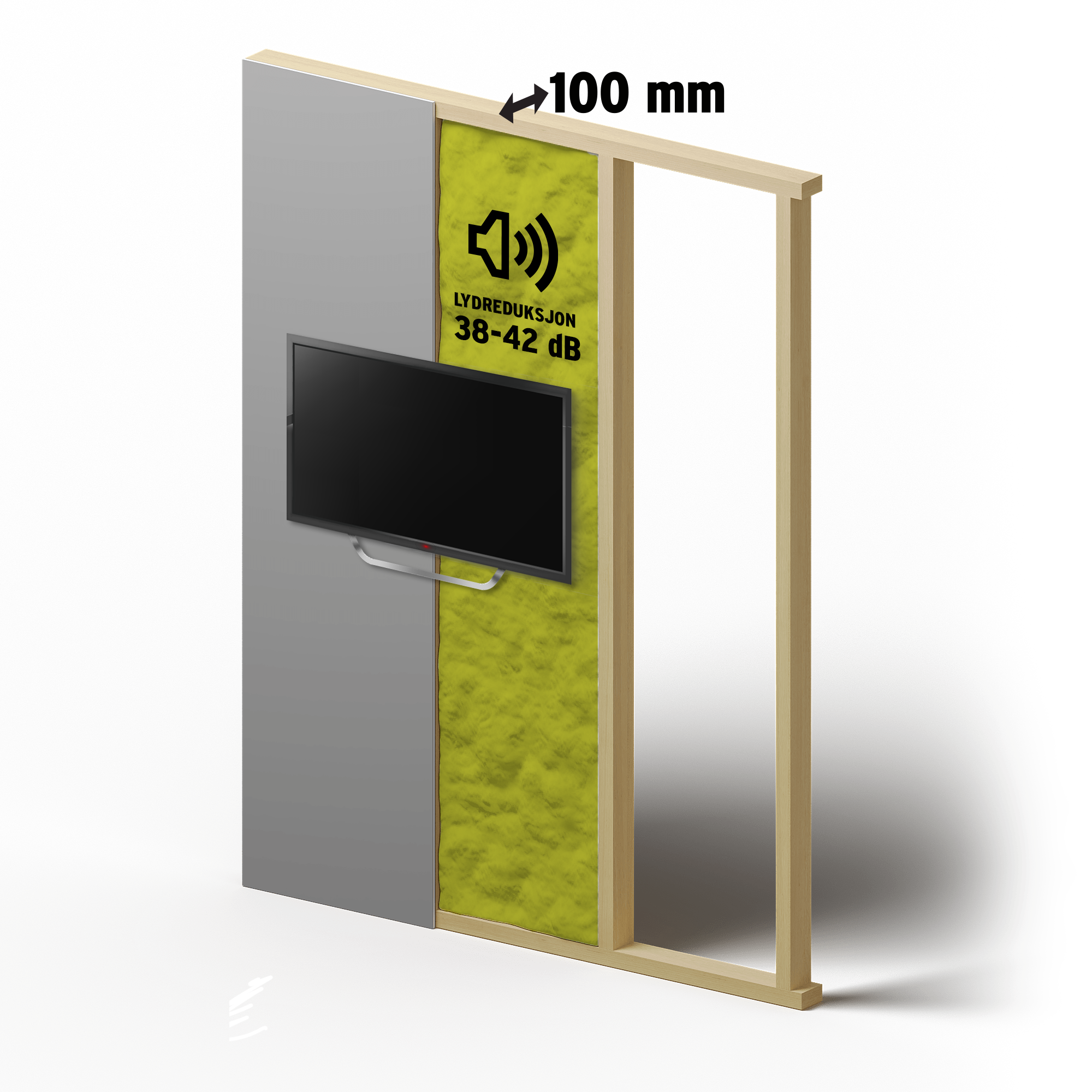 Isolasjon i innervegger og lettvegger demper lydbølger som ellers ville passert gjennom veggen. Jo tykkere og tettere isolasjonen er, desto bedre lydreduksjon. Kombiner gjerne med dobbel gips for ekstra effekt.
