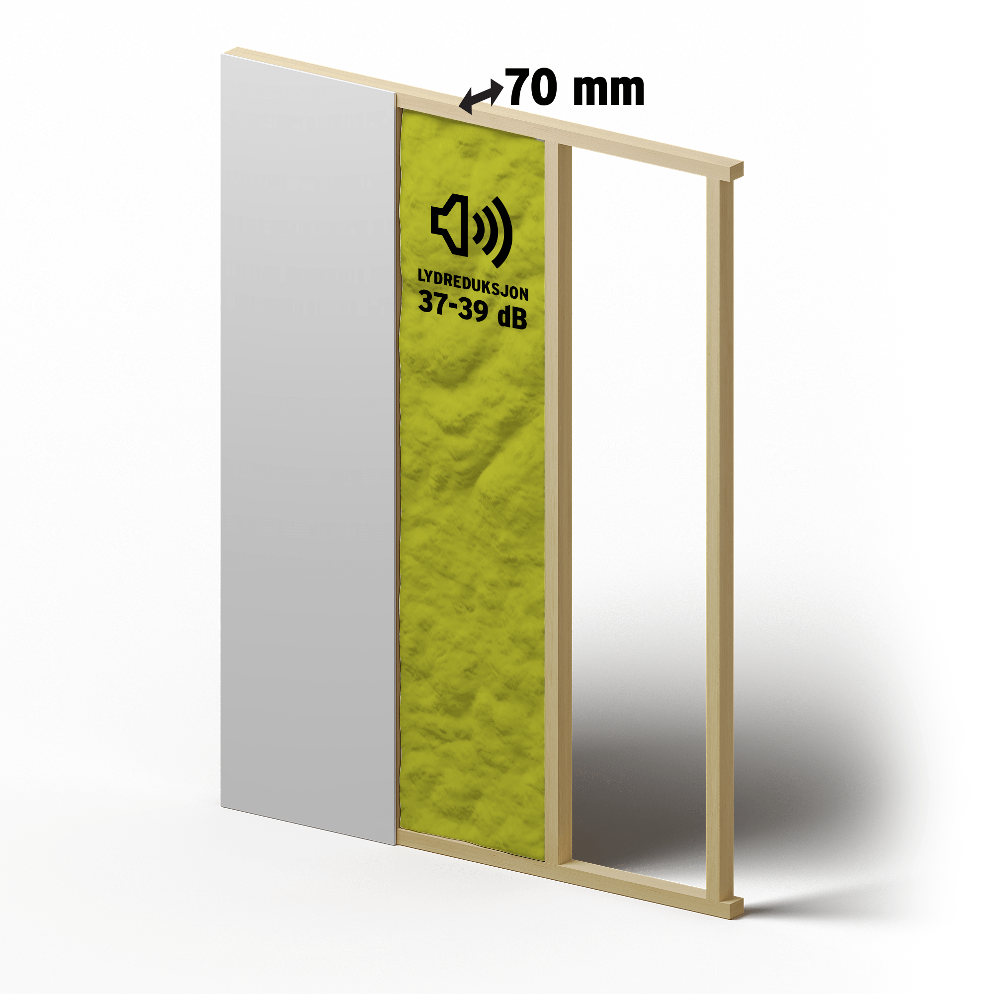 - Mulighet for dobbel lag – to lag gips sammen med isolasjon gir maksimal effekt mot støy.
