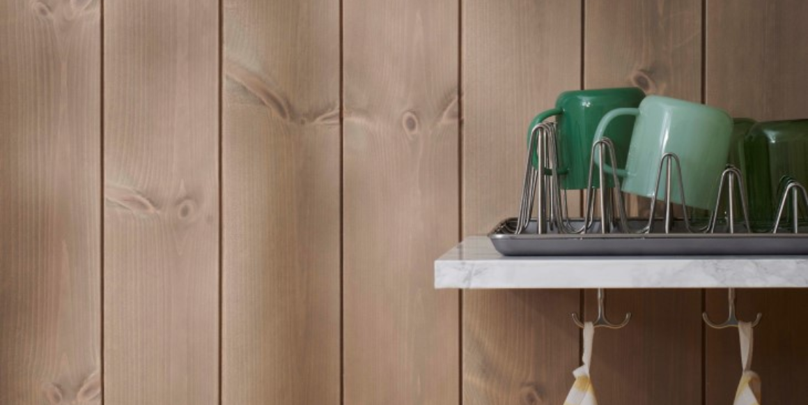 Panelet har endepløyning, som betyr at den kan skjøtes fortløpende. Sprekkpanel er derfor enkelt å montere. Kombinér gjerne ulike bredder og fargenyanser for å gi rommet et personlig uttrykk. Du kan for eksempel ha brede bord på veggen, og smale bord i taket.