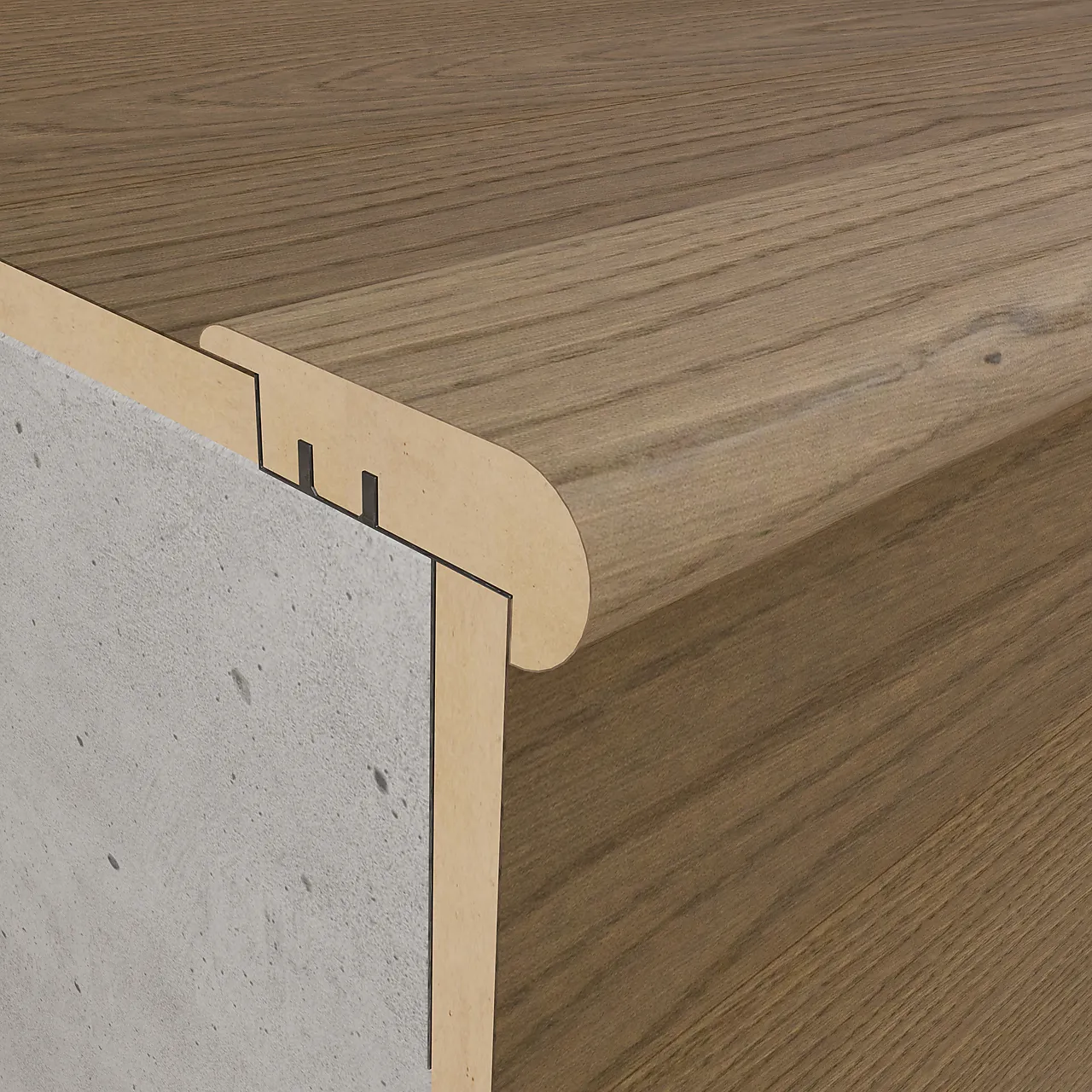 Trappenese eik mattlakkert finér med brakett 2,42 meter varmgrå