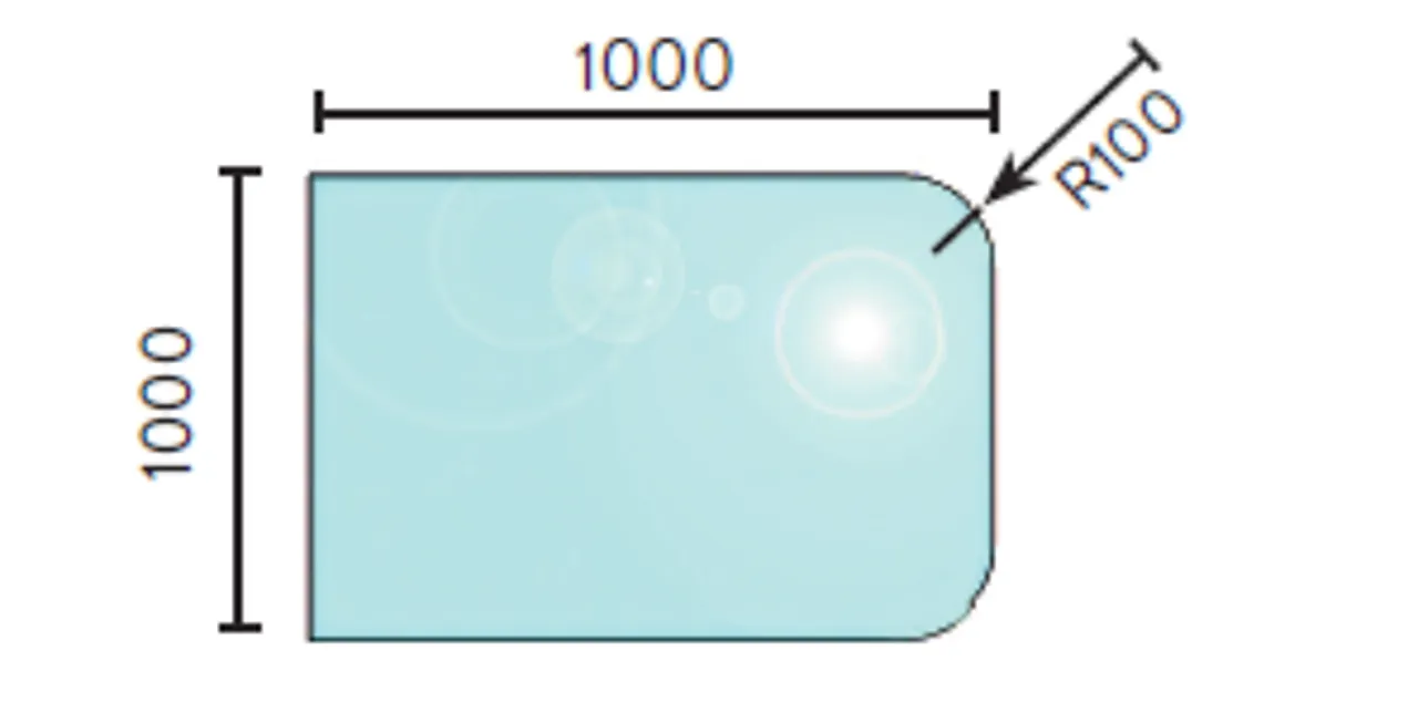 Gulvplate glass 1000 x 1000 mm radie på avrundede hjørner