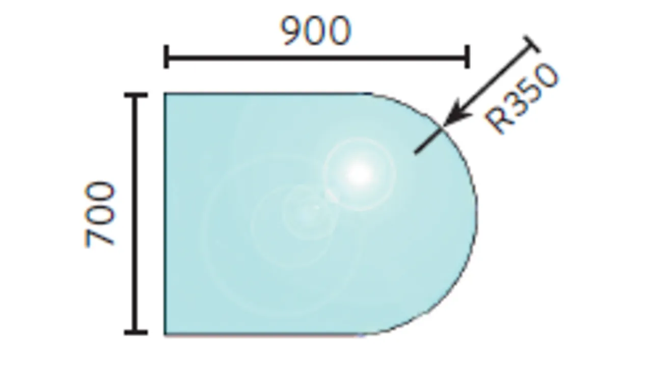 Gulvplate glass 700 x 900 mm radie på bue fasett