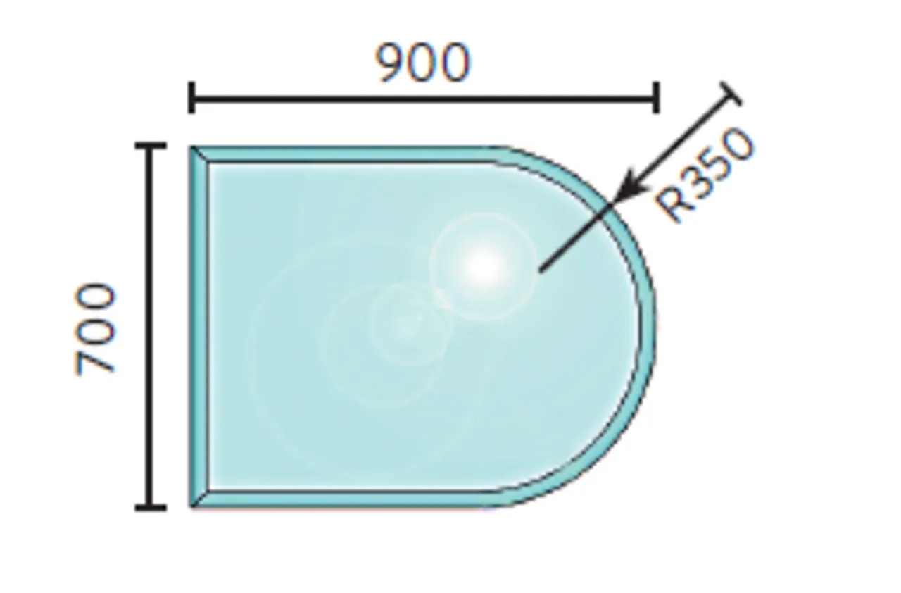 Gulvplate glass 700 x 900 mm radie på bue fasett