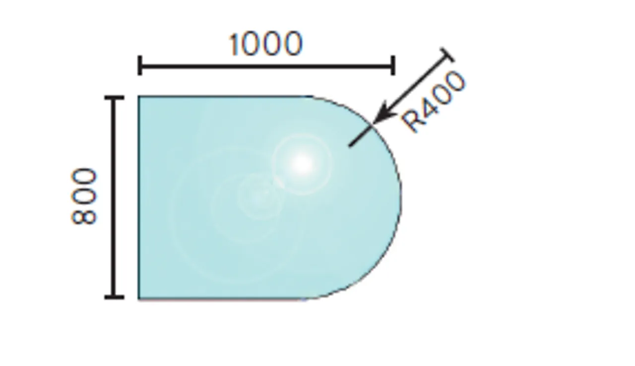 Gulvplate glass 800 x 1000 mm radie på bue fasett