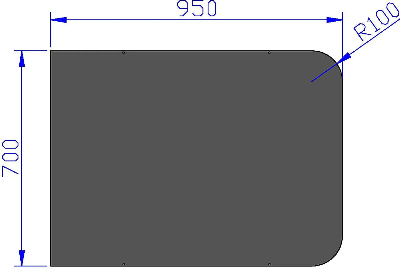 Gulvplate stål sort 900 x 800 mm radie på sirkel