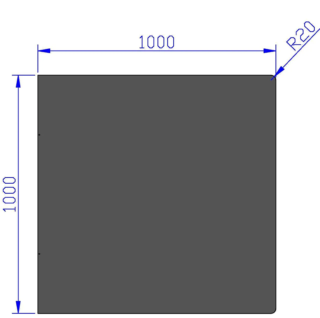 Gulvplate stål sort 1000 x 1000 mm radie på avrundede hjørner