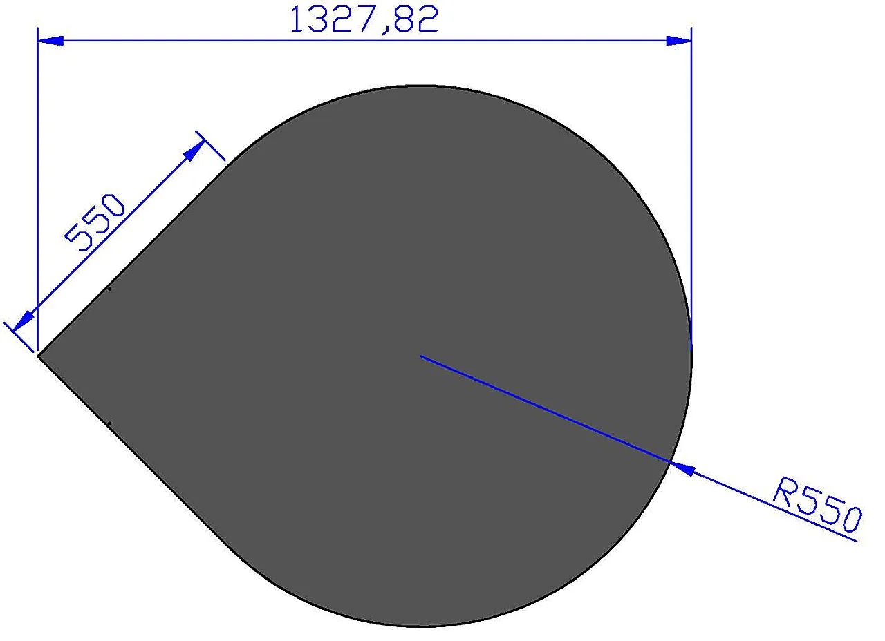 Gulvplate stål sort 1100 x 1330 mm radie på sirkel