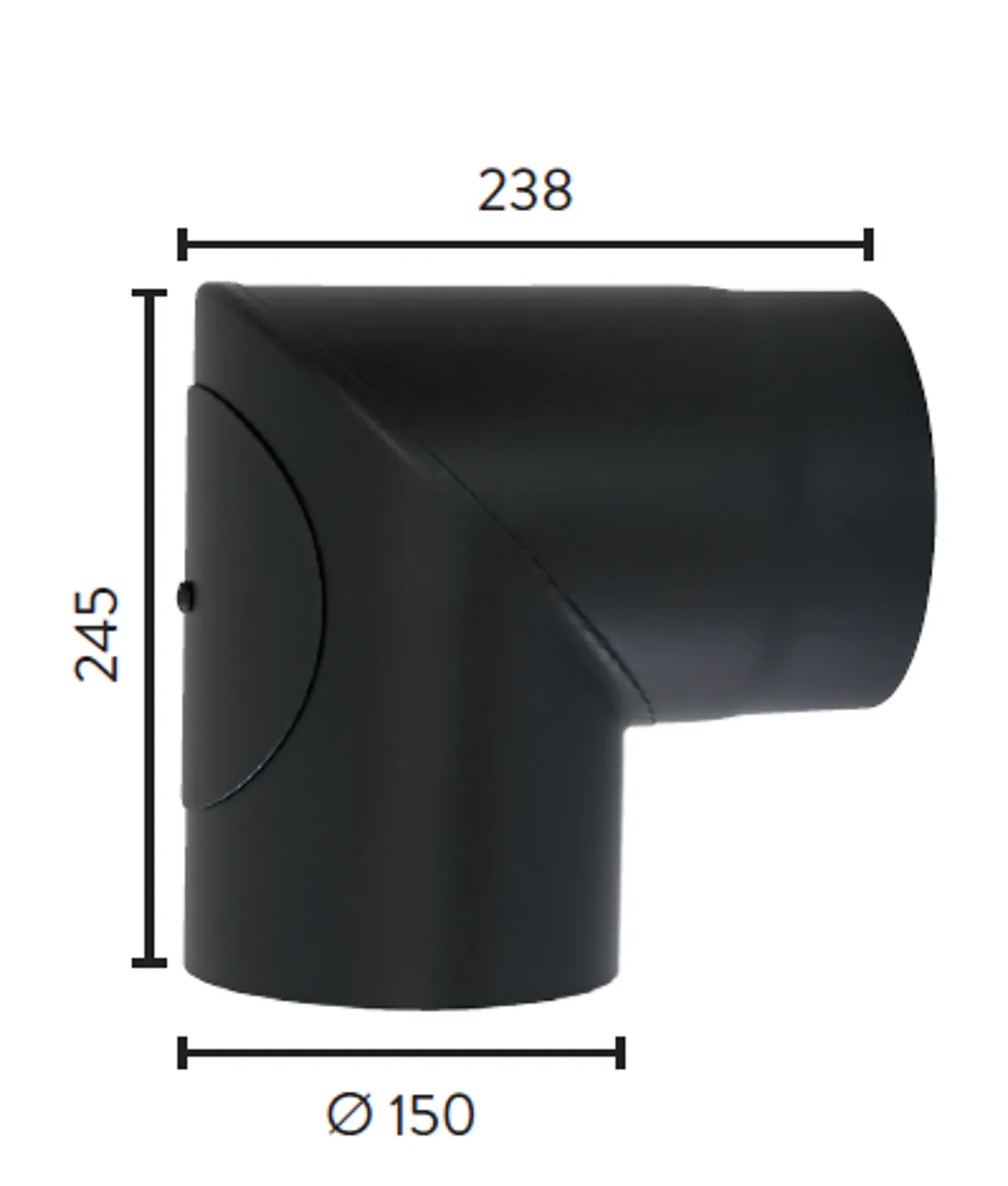 Røykrør m/luke Ø150/90gr matt sort