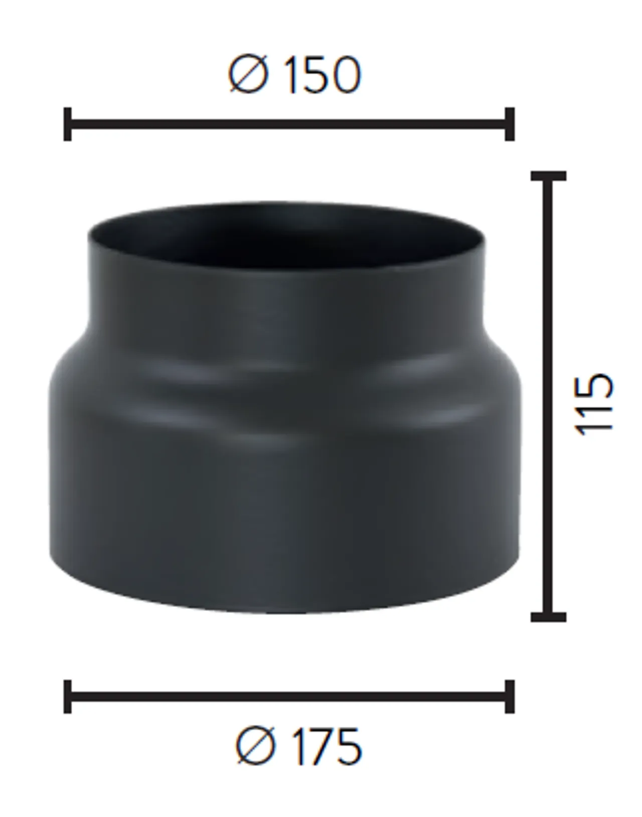 Røykrør overgang 1,25 mm Ø175 - Ø150 mm sort