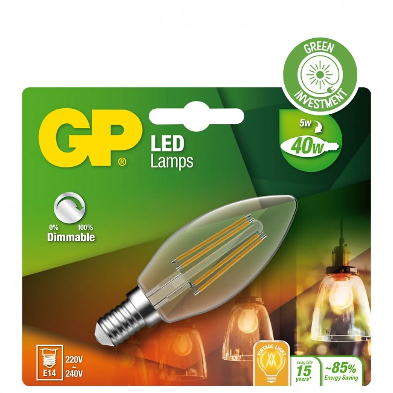 Lyspære led filament kronepære mini candle E14 5 Watt